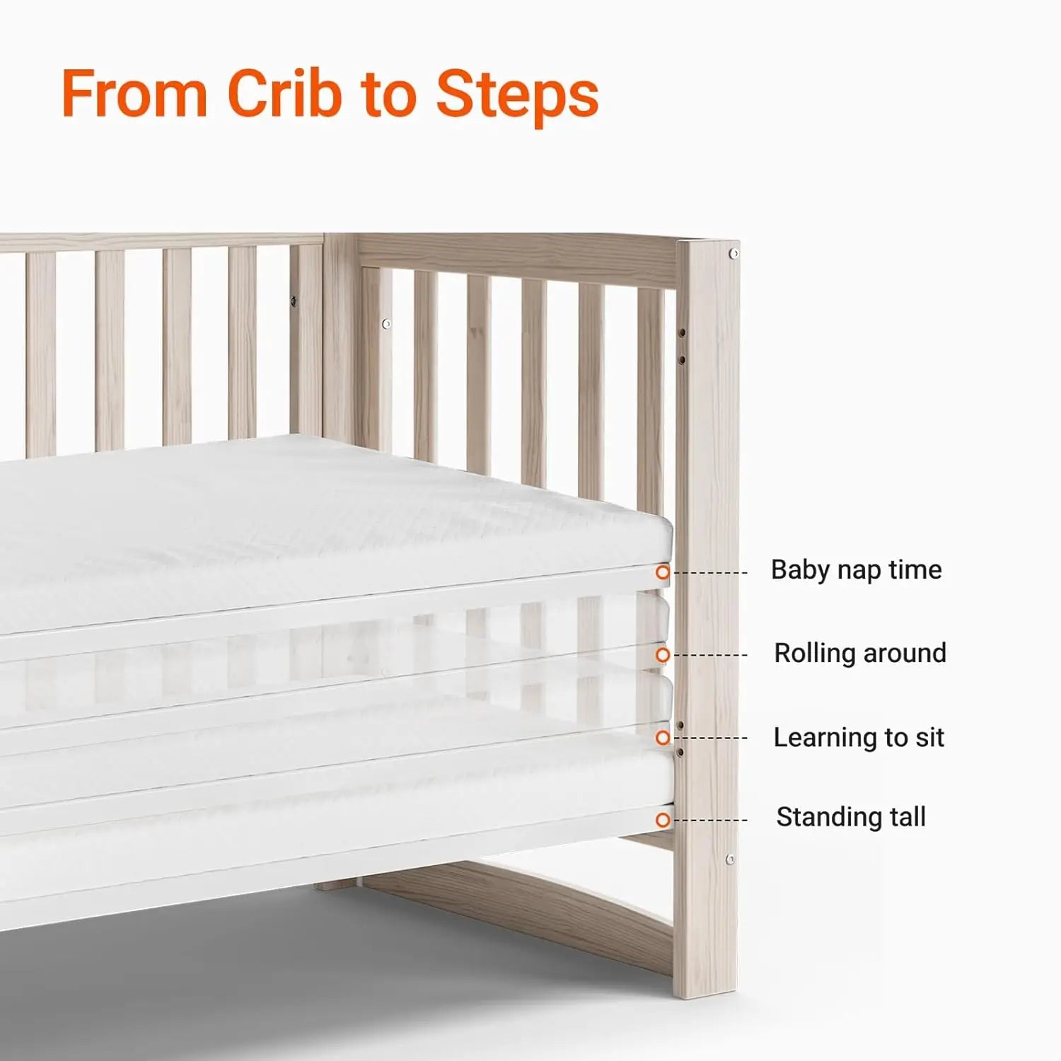 - You can convert the crib as your child grows—from crib to toddler bed to daybed—plus adjustable mattress height options to fit sleep routines.