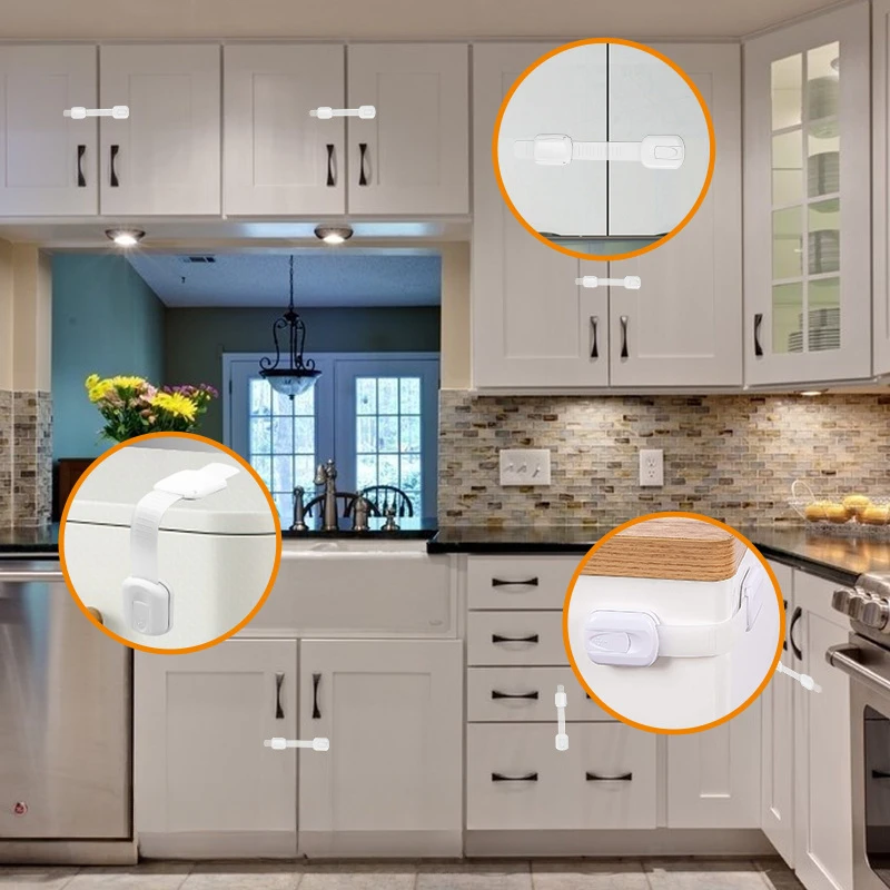 Baby Safety Lock Drawer Child Safety Cabinet Locks Adhesive Cabinet Drawer Door Latches Baby Safe Straps