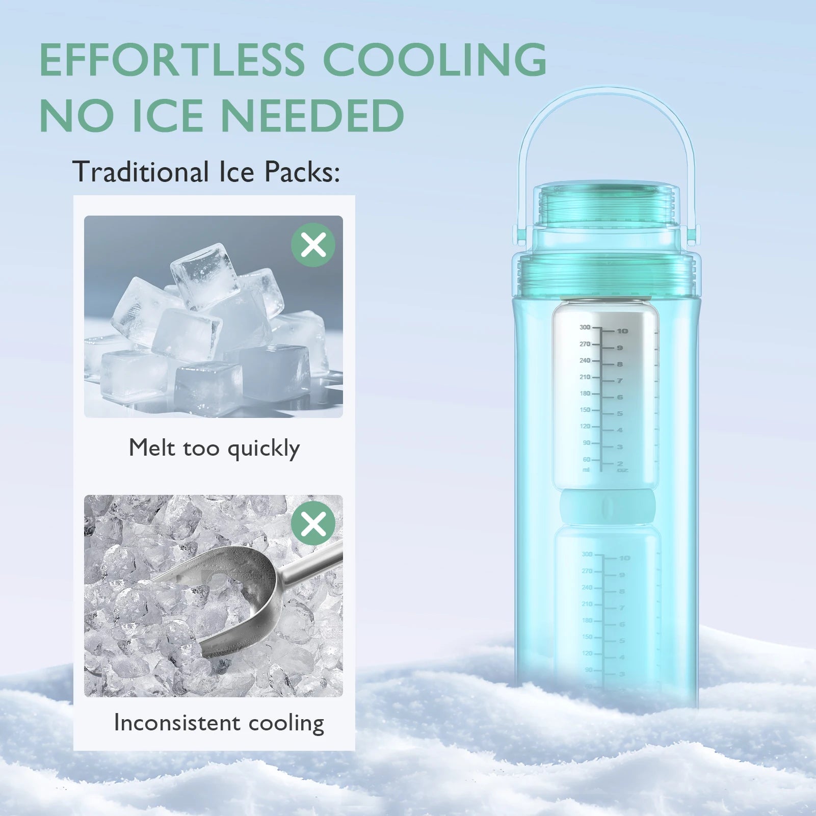 Effortless Operation: Freeze cooling tube for 10+ hours, insert into cooler, and add bottles - ready to chill instantly. Perfect for busy moms.